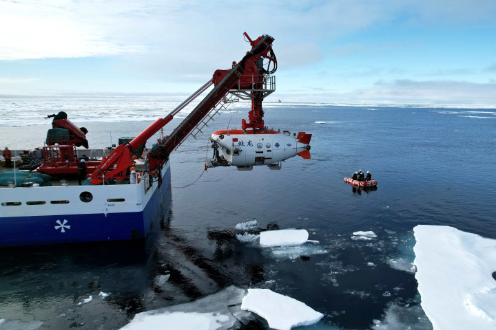 “蛟龙”号在北极冰区载人深潜。新华社记者刘诗平 摄