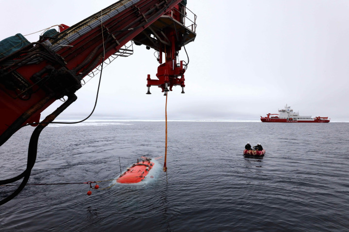 “蛟龙”号在北冰洋冰区下潜。新华社记者刘诗平 摄