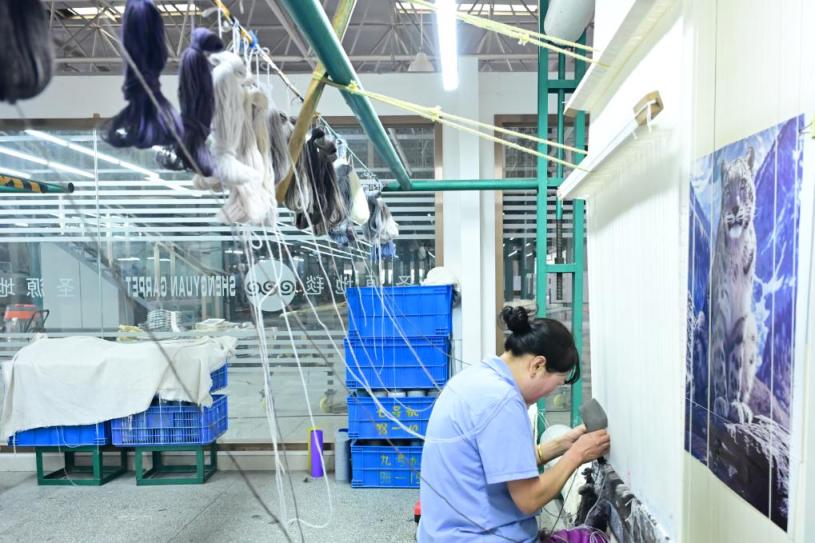 “以前在外打工,如今家门口就业,每月能挣近5000元,还能照顾家里。”42岁的织工祝存凤算起“幸福账”。公司近千名员工中,不少是当地少数民族群众,藏毯技艺显著带动了当地群众增收。