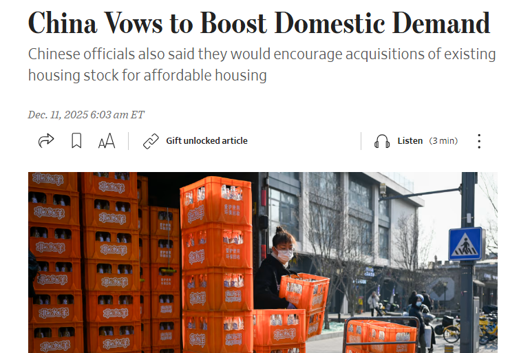 2025年12月10日至11日,中央经济工作会议在北京召开,为2026年中国经济工作指明了方向。多家外媒认为,会议传递出的明确信号不仅展现了中国应对复杂外部环境不确定性的坚定决心,还强调了推动高质量发展的长期战略目标。